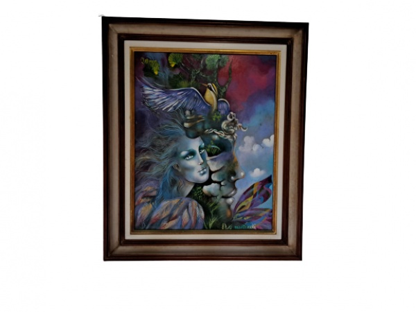 • MARTINOLI, Óleo sobre Eucatex, acid, intitulado no verso "Sedução", Rio, 1989,  50 x 40 cm.