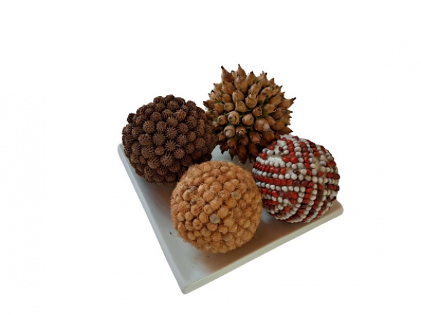 • Bandeja em cerâmica branca 25 x 25 e 4 esferas decoradas artesanalmente