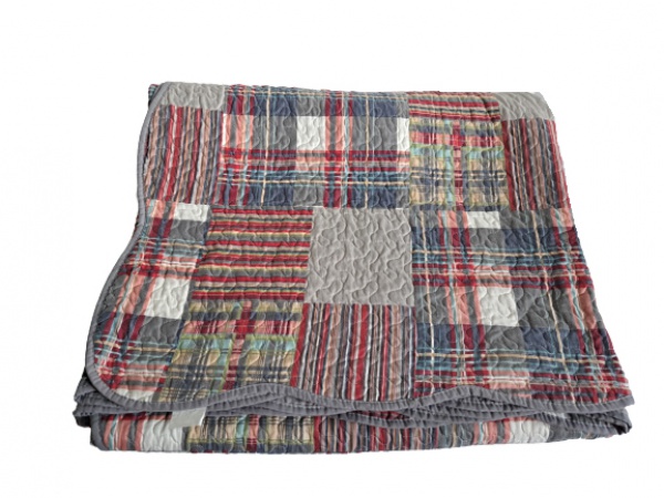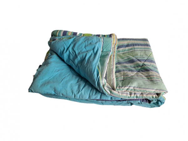 • Edredom para casal listrado,  apresenta manchas, 160 x 235 cm.