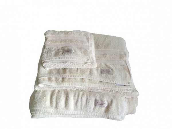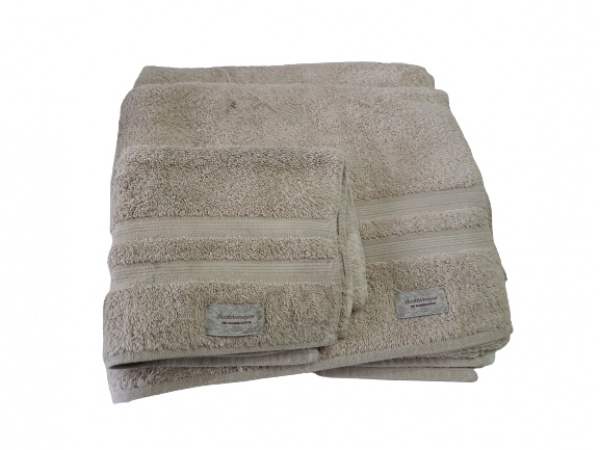 • Kit toalhas sendo 2 de banho e 1 de rosto Budmmeyer, algodão e fio  egípcio na cor bege, apresenta manchas.