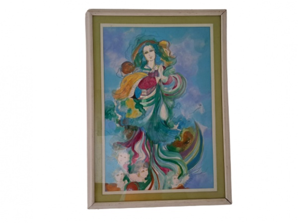 • SERGIO MARTINOLLI - Guache representando Nossa Senhora da Conceição, Esta obra foi adquirida no Atelier do Artista e Barrinha, no entanto não localizamos assinatura 78 x 57 cm.