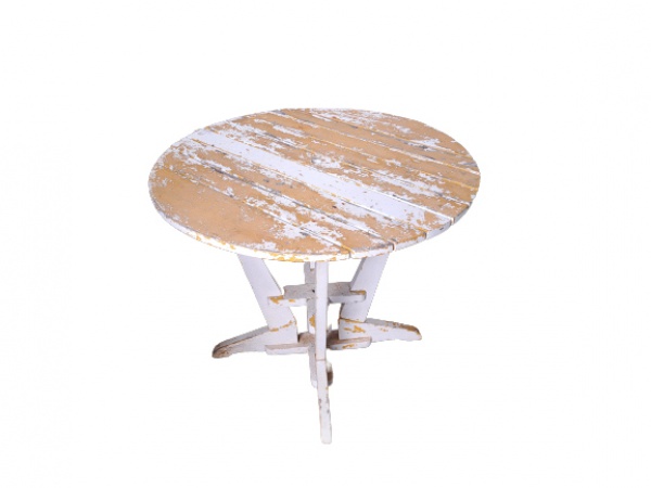 • Mesa para jardim/Varanda em madeira nobre, tampo circular com pernas arrematadas em trava,  (no estado) Diam. 85, Alt. 60 cm.