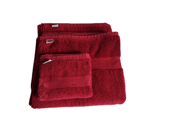 • Kit toalhas sendo 2 de banho e 1 de rosto Springmaid  na cor e vinho.
