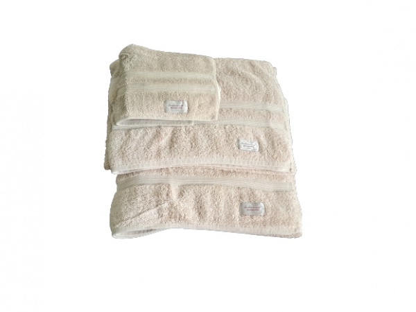 • Kit toalhas sendo 2 de banho e 1 de rosto Budmmeyer na cor champagne.