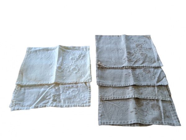 • Seis jogos americanos em linho  bordado sendo 4 na cor café e 2 cremes, 51 x 35 cm.