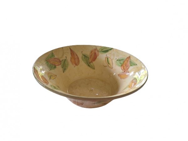 • Centro de mesa em cerâmica Luiz Salvador  com pinturas  representando folhas sobre fundo creme, Diam. 42, Alt. 14 cm.