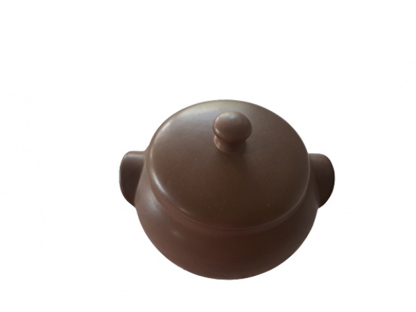 • Panela em cerâmica na cor café, Diam.  25, Alt. 18 cm.