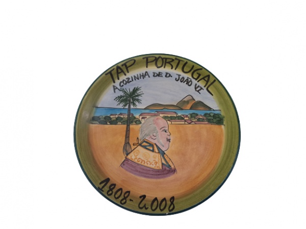 • COLECIONISMO - Prato em cerâmica policromada Restaurante da Boa Lembrança,  Tap Portugal, A Cozinha de D. João VI,  1808/2008 94, Diam. 26 cm.