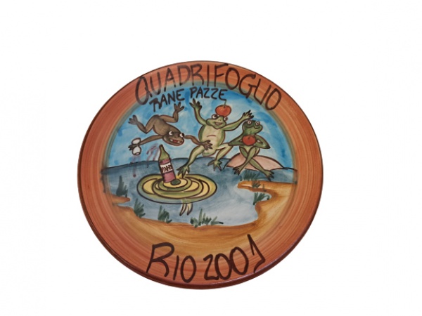 • COLECIONISMO - Prato em cerâmica policromada Restaurante da Boa Lembrança,  Quadrifoglio, Rane Phazze,  Rio 2001, Diam. 26 cm.