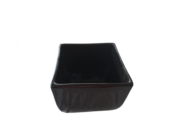 • Cachepot em cerâmica na cor noir, marcado na base Petrópolis, marcado na base Petrópolis, 19 x 19, Alt. 16 cm.