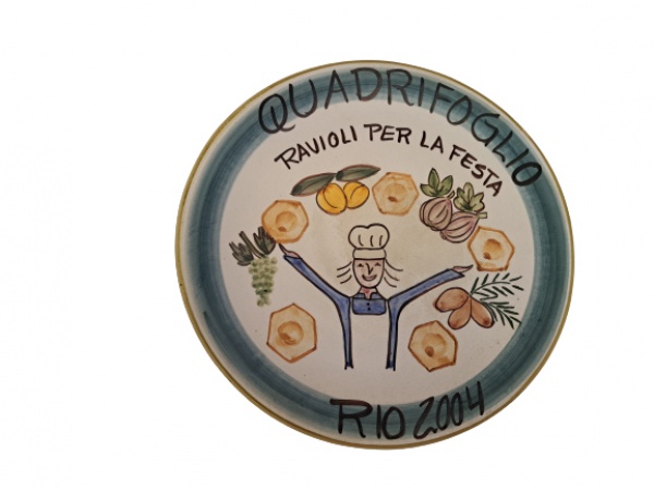 • COLECIONISMO - Prato em cerâmica policromada Restaurante da Boa Lembrança, Ravioli Per La Festa,  Rio 2004, Diam. 26 cm.