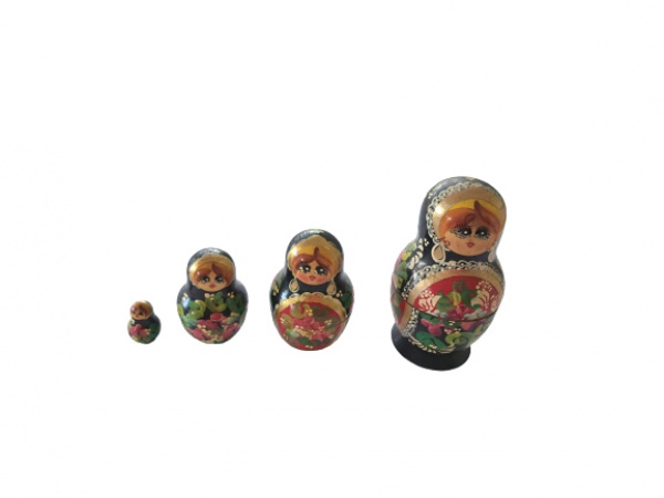 • Matrioskas russas em madeira policromada, Alt. 16 a 4 cm.
