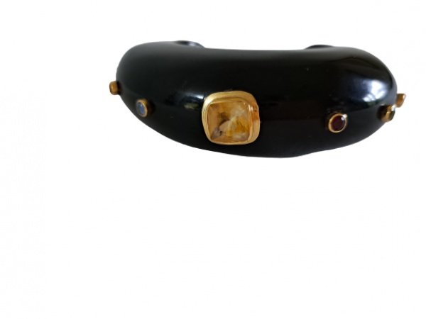• Bracelete executado  em resina cravejado de pedras brasileiras topázio amarelo e azul, rubis, e etc.