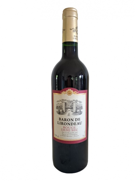 • Vinho tinto francês, Baron de Larondeau Rouge Lirondeau Demi Sec, 750 ml.
