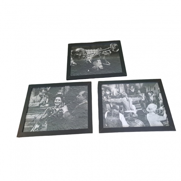• Três poster em preto e branco, Gigantes do Jazz, 21 x 38 cm.