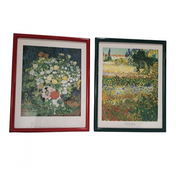 • Par de gravuras, Vincent Van Gogh, emolduradas, ambas as molduras com leves arranhões,  30 x 38 cm.