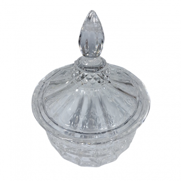 • Bombonière em cristal lapidado, Alt. 18, Diam. 11 cm.