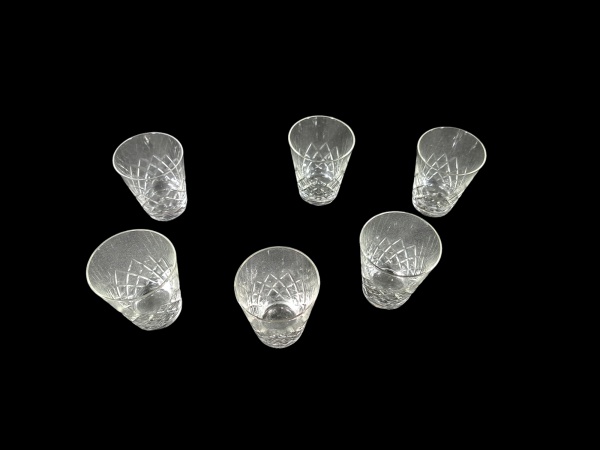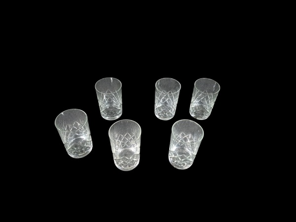 • Seis copos para aperitivos em cristal lapidado, Alt. 8 Diam. 6 cm.