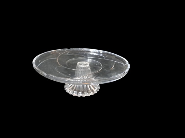 • Boleira/Doceira em cristal lapidado apoiado em coluna côncava, Diam. 31, Alt. 10 cm.