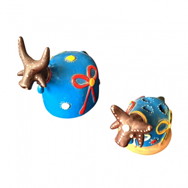 • ARTE POPULAR - Par de bumba meu boi em argila policromados,  Alt. 12 e 8 cm.