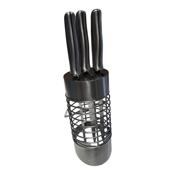 • Kit com 5 facas para bancada de cozinha com seu organizador, Euro premier houseware, com leves marcas do tempo.