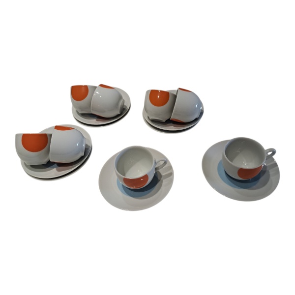 • Seis xícaras com pires em porcelana Casa Amiga, Alt. 5 Diam. 6 cm.