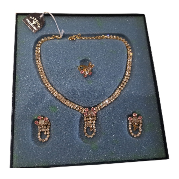 • Asfour Crystal Pbo30%, Colar, par de brincos e anel com pedras translúcidas e rosa