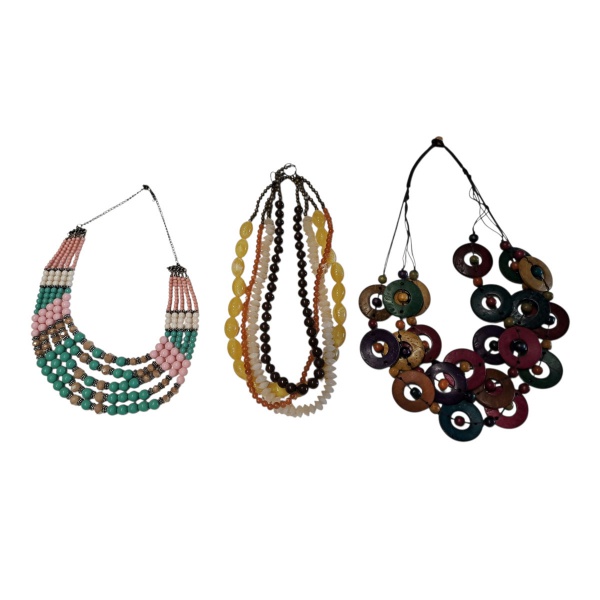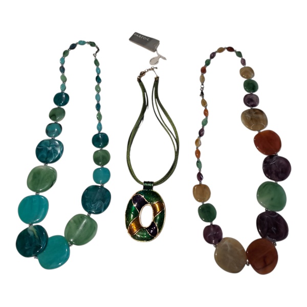 • Três Colares femininos em modelos diversos, um deles com a etiqueta original.