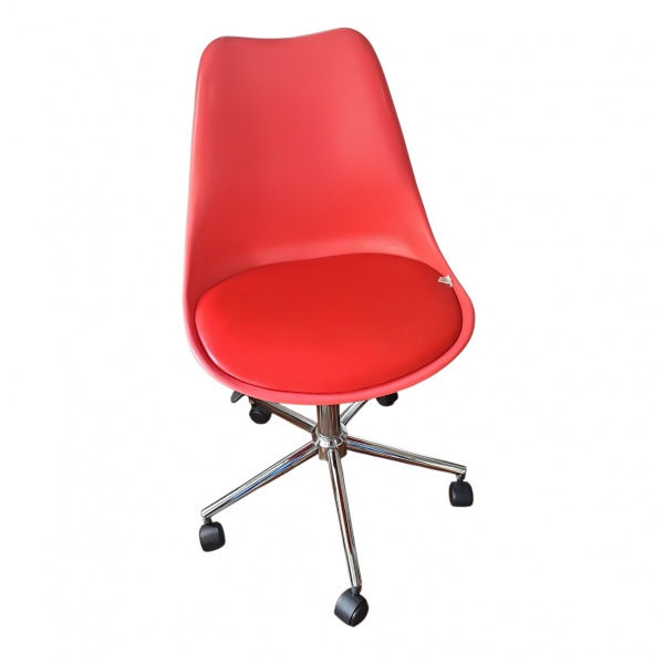 • Cadeira office Saarien, ajustável polietileno na cor vermelha pernas cromadas com rodízios, 47 x 40, Alt. 90 cm.