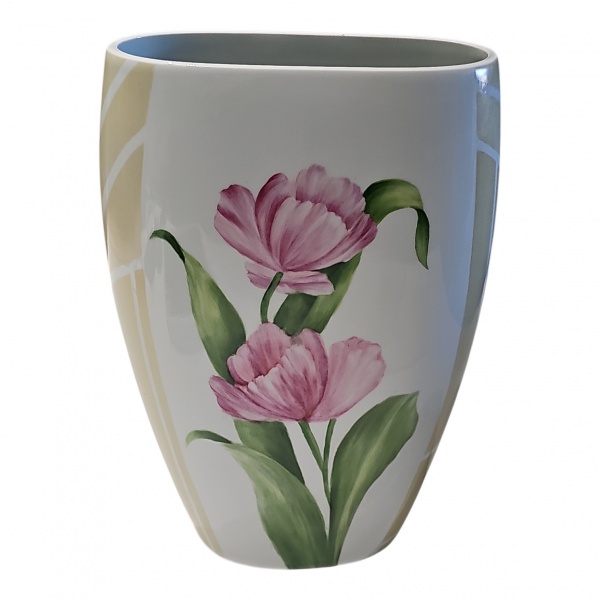 • Vaso em porcelana pintado à mão assinado na base Vera Regina, 20 x 9, Alt. 30 cm.