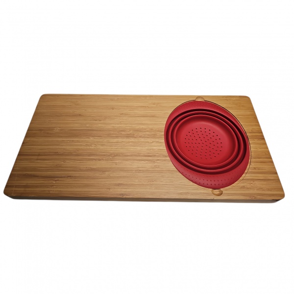 • Tábua de corte com escorredor de silicone, em sua embalagem original, 59 x 30 cm.