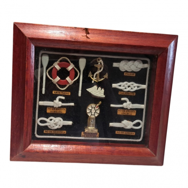 • Quadro com motivos alusivos a marinha com nós e outras artes navais, 27 x 23 cm.