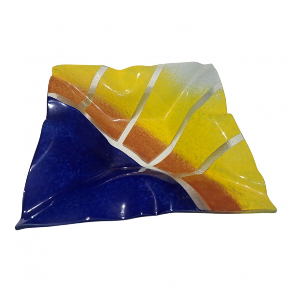 • Centro de mesa em vidro policromado, 23 x 23, Alt. 4 cm.