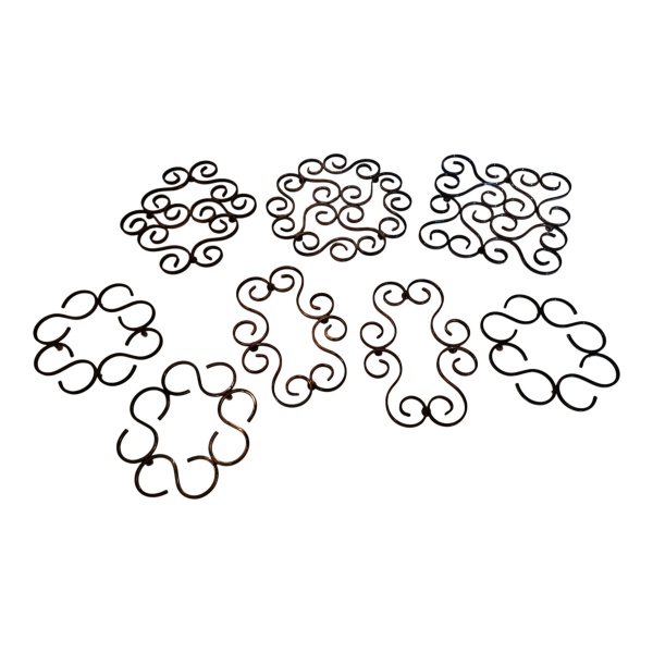 • Oito descansos para pratos quentes, espessurados à prata, Diam.  22 a 18 cm,