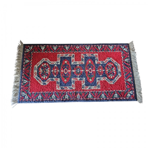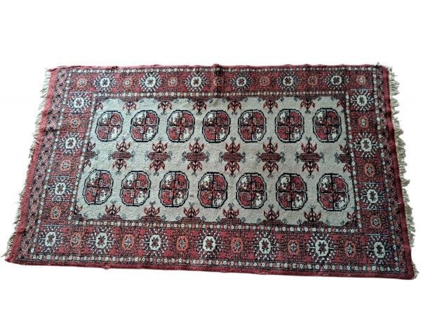 • Tapete  oriental, lã sobre lã nas cores vermelho/creme/azul e etc. 170 x 82 cm.
