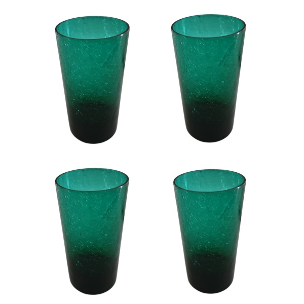 • Quatro copos para long drink/água em vidro na cor verde, Alt. 14, Diam. 7 cm.