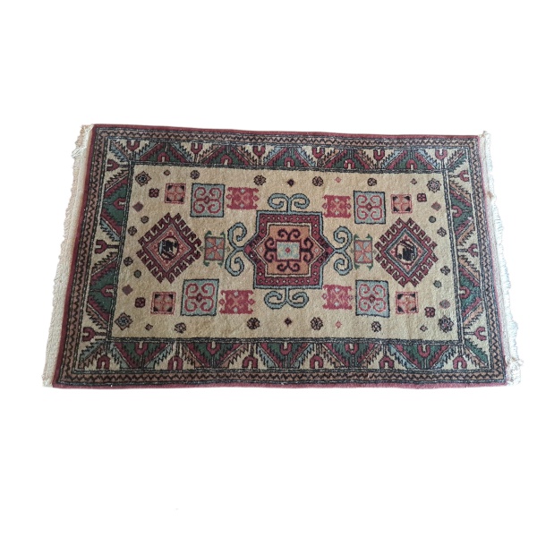 • Tapete persa  tecido à máquina nas cores verde/vermelho/creme e etc. a franja não é original 74 x 123 cm.