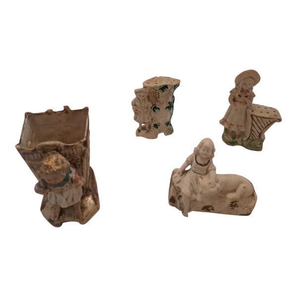 • Quatro floreiras em biscuit, uma delas com uma alça quebrada,