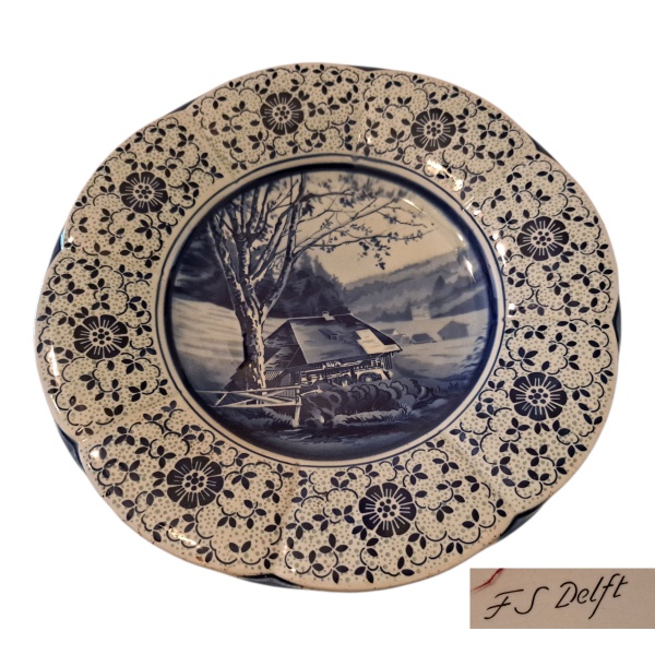 • COLECIONISMO - Antigo medalhão em porcelana Blue & White Delft marcado no verso, Diam. 35 cm.