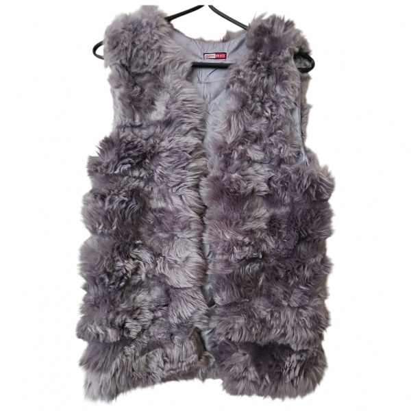 • Colete feminino Tam. M. de pelos artificiais 100% poliéster na cor lilás by Off Rio. Com. 70 cm.