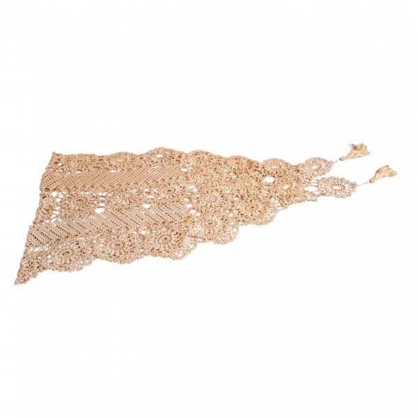 • Caminho de mesa em crochê na cor caramelo, Com. 196,  Larg. 50 cm.
