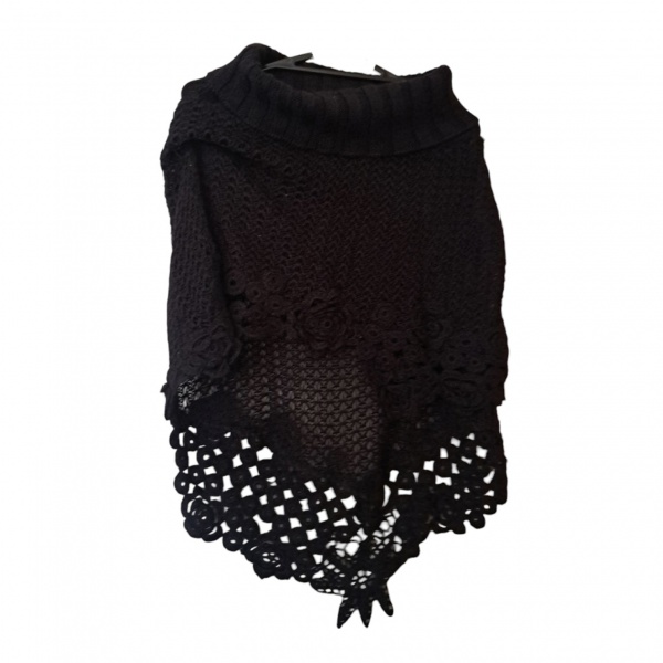 • Pelerine de tricô, feminino, Tam. M. na cor preta by Sonia Menicucci, Com. 65 cm.