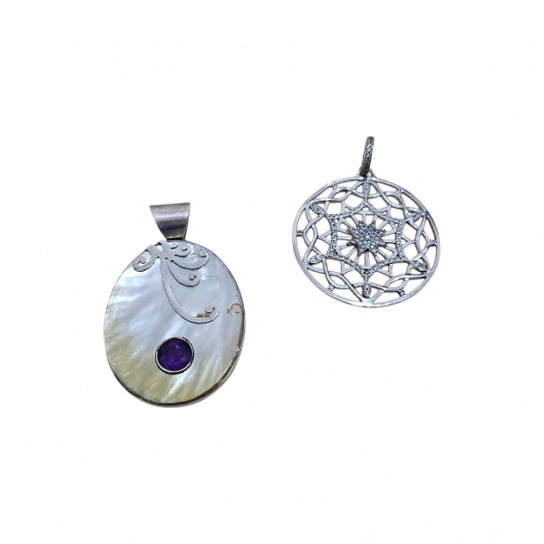 • PRATA - Par de pedantices em prata contrastada, um 950 e 925,  65, 8 g. bruto, Diam. 6 e 8 x 5 cm.