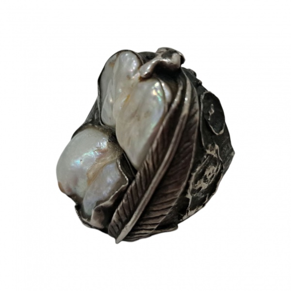 • Um anel em prata e madrepérolas aro 22. 47,8 g. bruto.