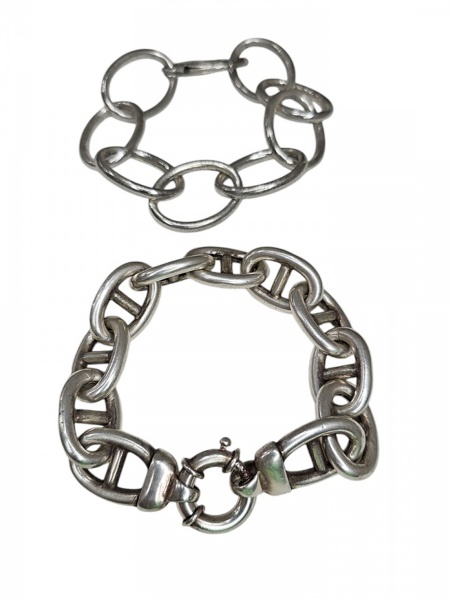 • Duas pulseiras de prata uma de elos e outra corrente. Com. 21, 60,5 g.