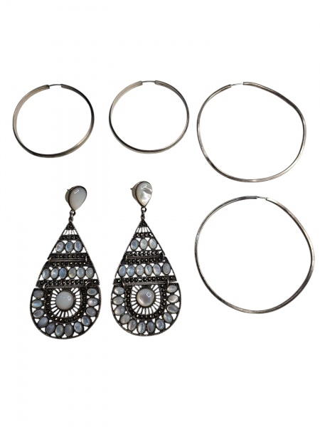 • Três  brincos de prata, dois argolas e 1 indiano com madrepérolas, 38,8 g.