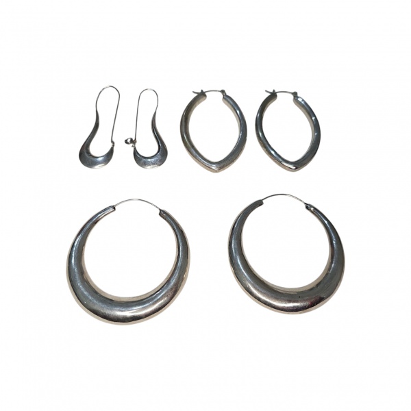 • Três  brincos de prata, sendo dois argolas, 39,6 g.