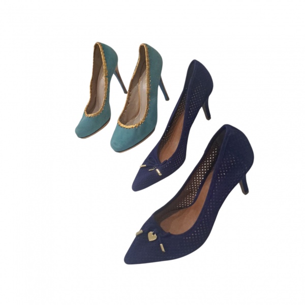 • Dois pares de sapatos femininos nº 37 salto agulha, um azul petróleo by Luz da Lua e outro azul piscina e dourado by Claudina.