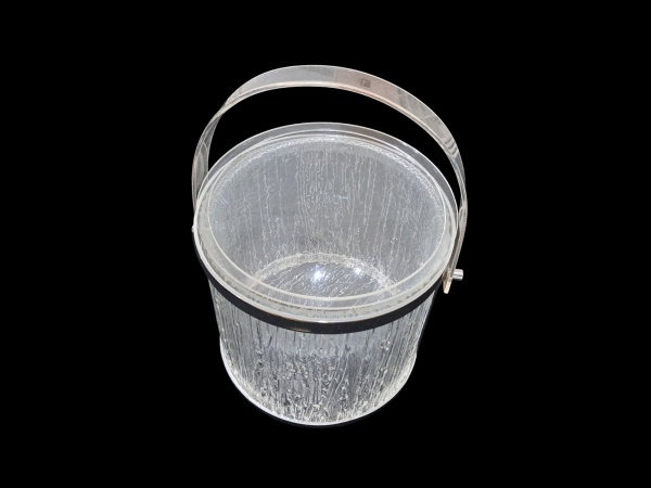 • Uma geleira em acrílico com acabamento em metal prateado, Alt. 19, Diam. 21 cm.