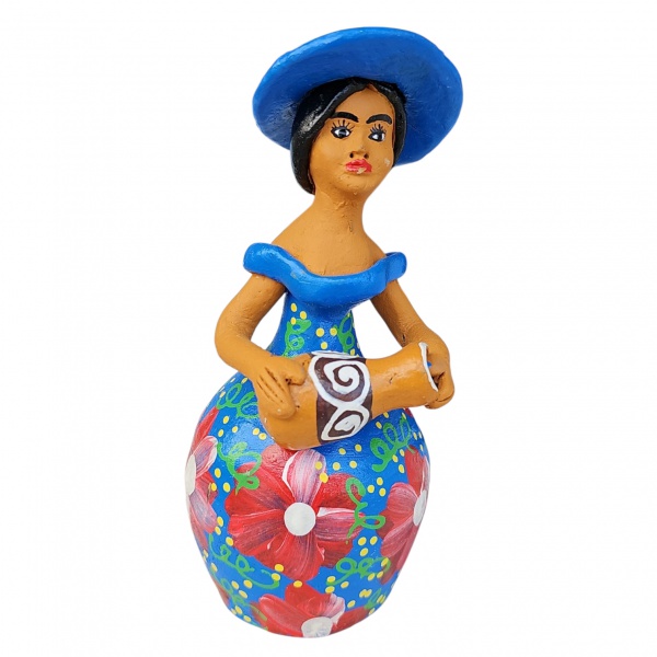• Escultura em terracota policromada representando figura feminina, 8 x 8,  Alt 16 cm.